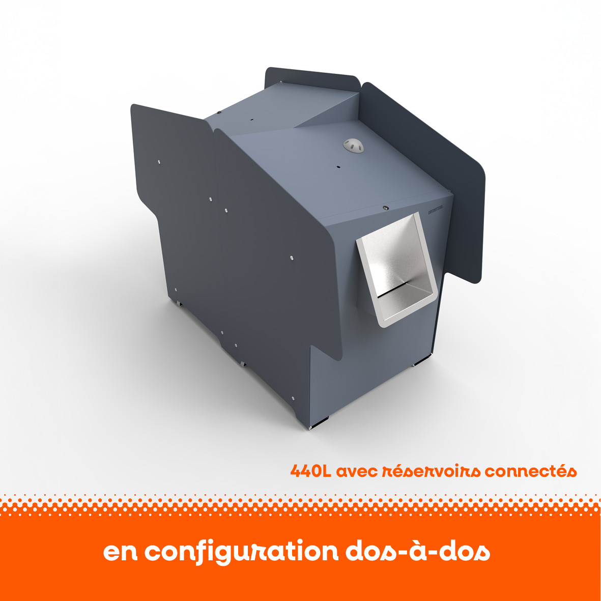 - Jusqu’à 440 litres de capacité totale grâce à des réservoirs connectés, en configuration côte-à-côte ou dos-à-dos