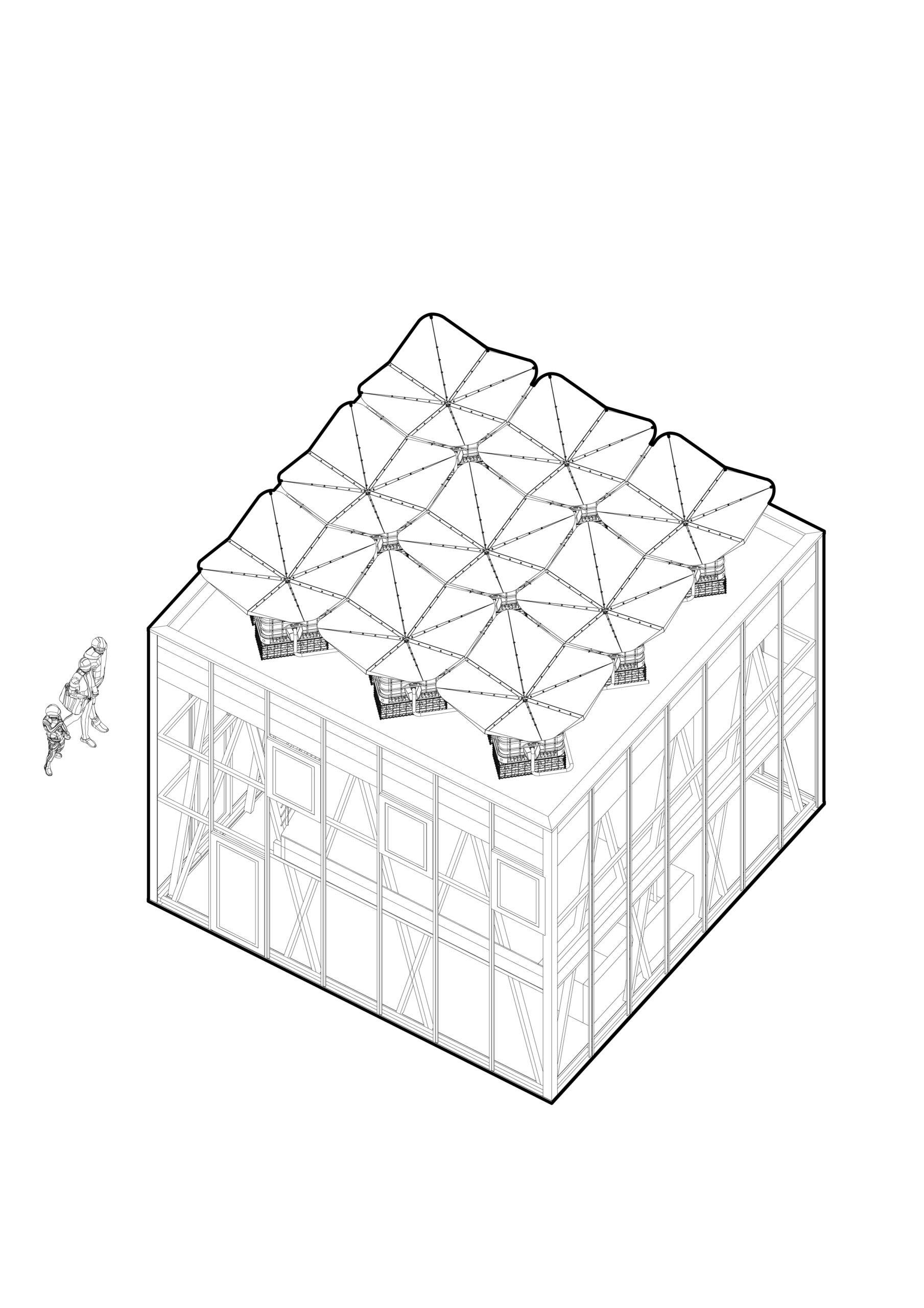 Its 4 petals capture rainwater to direct it by gravity to the watertank.