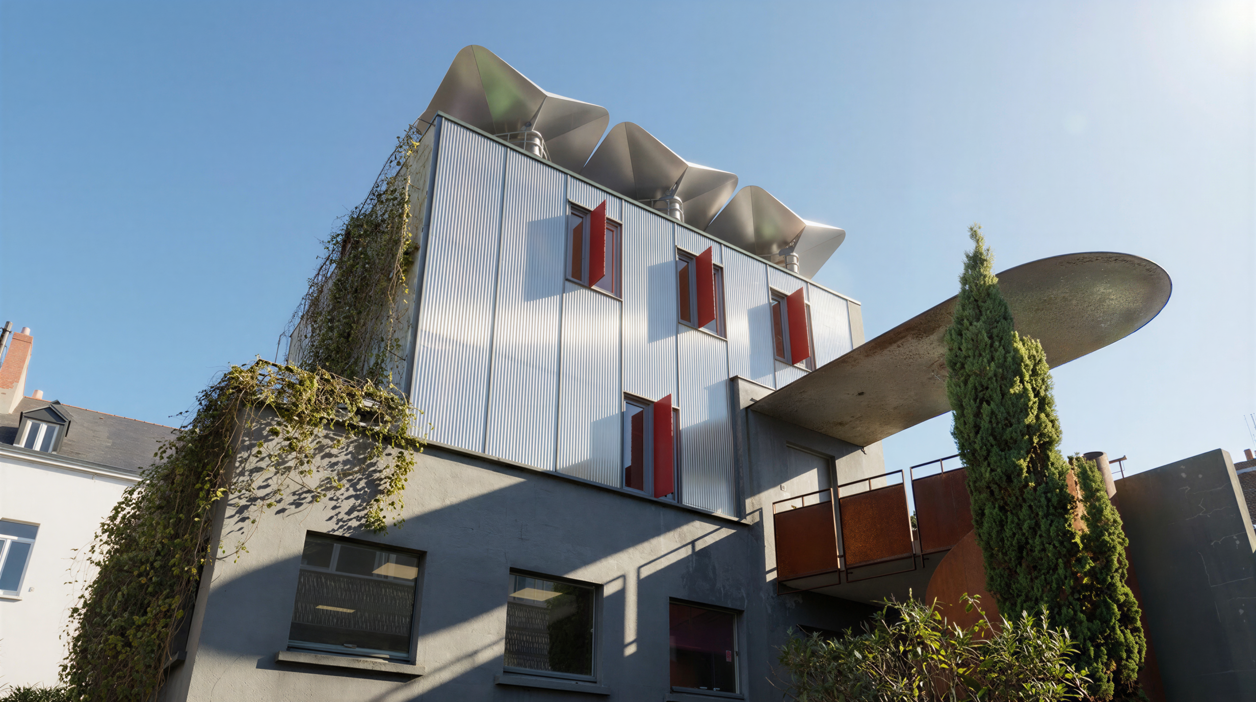 The intelligence of the device lies in its geometry: it simultaneously ensures solar reflection and rainwater collection.