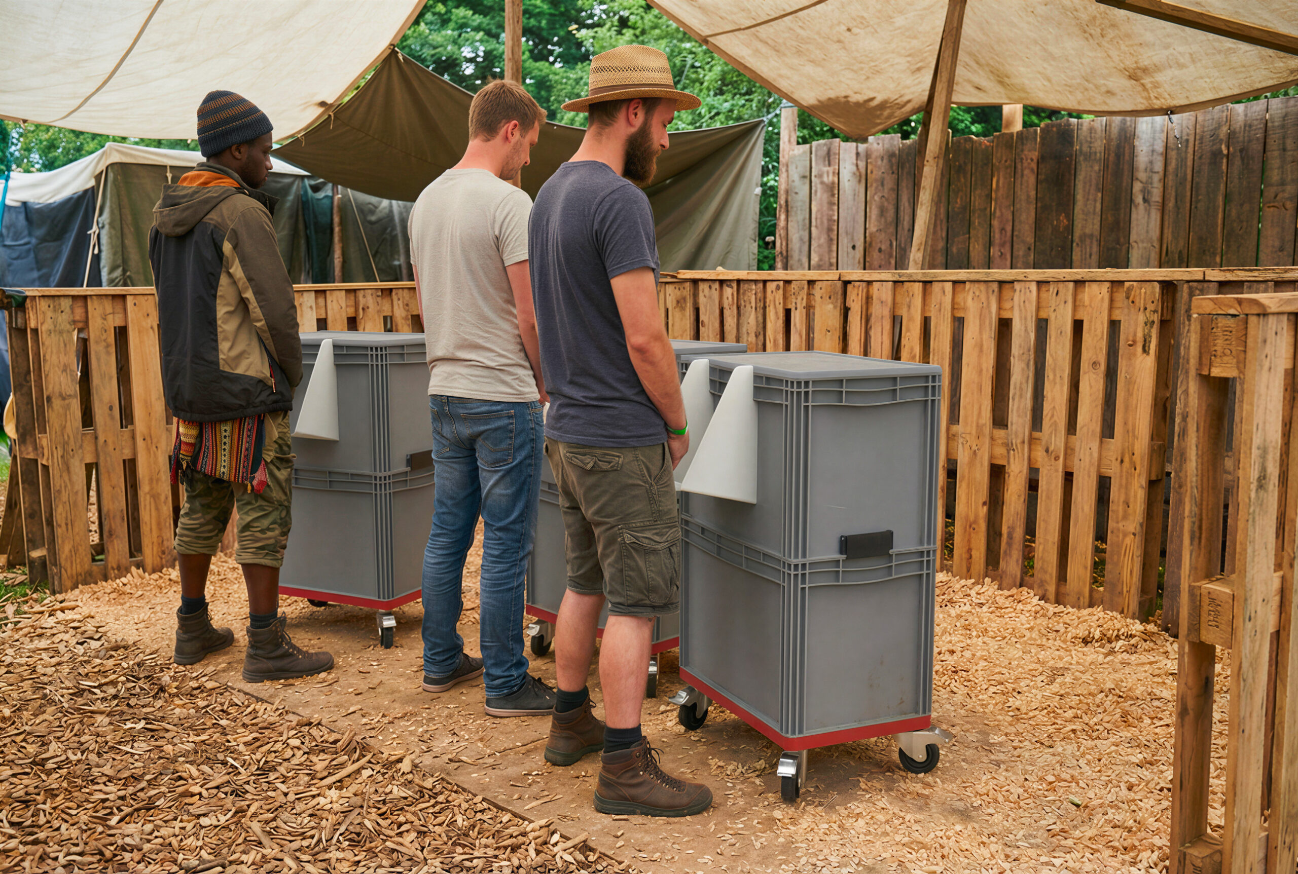 Le Uritrotteur PP est un urinoir sans eau, mobile, économique et écologique, idéal pour une utilisation en festival, sur les chantiers, en appui saisonnier pour les villes ou dans les maisons de santé et EHPAD. Conçu pour faciliter la collecte des urines, il s’intègre parfaitement dans une démarche d’économie circulaire et contribue à la valorisation des ressources.